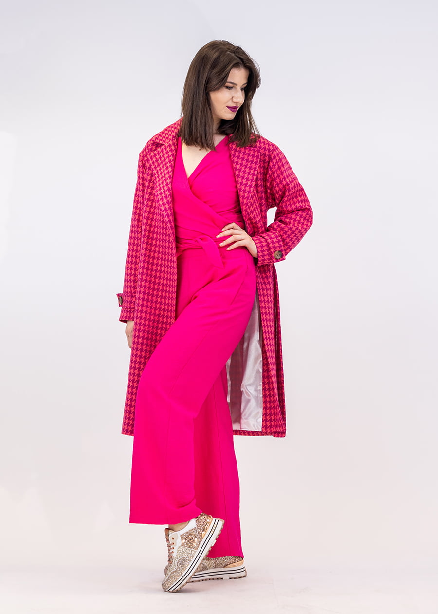 Płaszcz pepita fuksjowo różowy